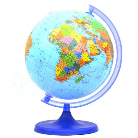 Globus z mapą polityczną. Świetnie nadaje się do przyswajania wiedzy z zakresu geografii a w szczególności rozmieszczenia państw. Doskonale sprawdzi się jako pomoc szkolna. Globus umieszczony jest na mocnej plastikowej podstawie.