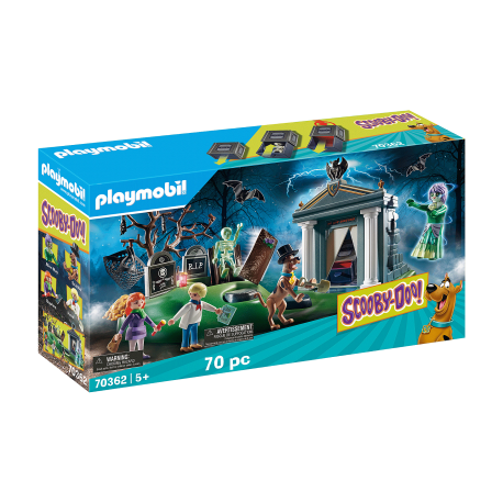 Zestaw Obejmuje Scooby-Doo, Fred i Daphne. Na cmentarzu czekają ich jeszcze bardziej nawiedzone niespodzianki, takie jak tajemnicza trumna, szkielet wyskakujący z grobu czy nagle zablokowane wejście do grobowca.