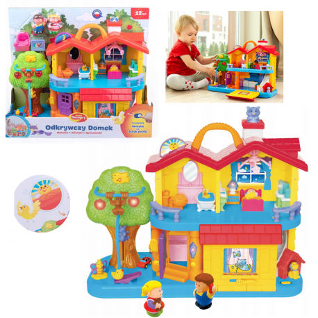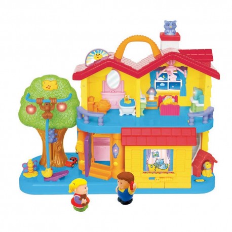 Zabawka, która umożliwi każdemu maluchowi poznanie zwyczajów panujących w domu. Domek jest pełen ciekawych niespodzianek, ekscytujących światełek oraz wypełniony dźwiękami i rymowankami prawie w każdym miejscu. Maluch naciskając na przedmioty i urządzenia znajdujące się w domku, usłyszy ich realistyczny dźwięk, między innymi odgłos skrzypiących drzwi, naturalne dźwięki telefonu, kuchenki czy pralki. Dodatkową radość sprawi dziecku możliwość przełączenia zabawki z dźwięków na wesołe rymowanki. Pociecha naciskając wtedy na dany przedmiot, który wydawał realistyczny odgłos, usłyszy zabawną rymowankę. Każda z funkcji domu to kreatywna zabawa, która pobudzi twórczość dziecka. Zabawka wspomaga naukę codziennych czynności domowych, jak również uczy logicznego myślenia.