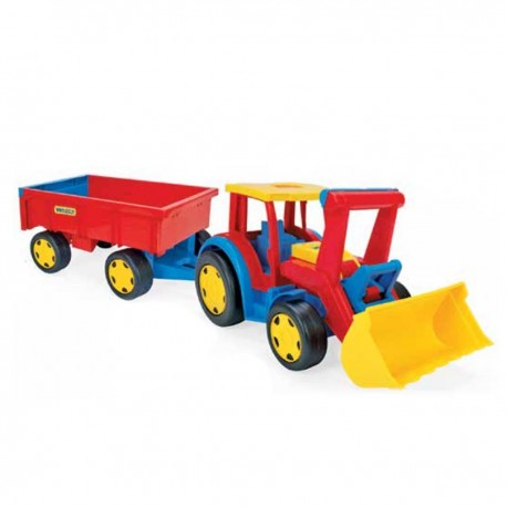 Traktor posiada ruchome elementy, dzięki którym zabawa jest jeszcze fajniejsza. Traktor posiada ruchomą łyżkę oraz żywą kolorystykę. Świetnie sprawdzi się do zabawy w domu, w ogrodzie i w piaskownicy. Przyczepka po doczepieniu dyszla z zestawu zmienia się w wózek do ciągnięcia.