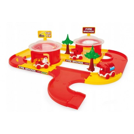 W zestawie znajduje się konstrukcja oraz 3,1m łącznej długości kolorowych odcinków drogi. Dodatkowo do zestawu dołączono 2 stacje straży pożarnej, 3 pojazdy z serii Kid Cars (dźwig, cysterna i wóz z drabiną), system dróg o łącznej długości 3,1 m, dekoracje i komplet naklejek.