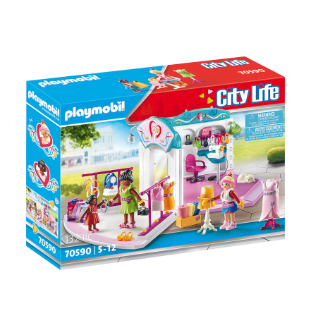 Budynek można łączyć z zestawami: „Modny butik z odzieżą" (nr art. 70591) i „Modny Butik z odzieżą dla dzieci” (nr art. 70592) sprzedawane oddzielnie.