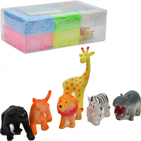 W zestawie znajduje się 5 kolorów neonowych i 6 zwierzątek.
