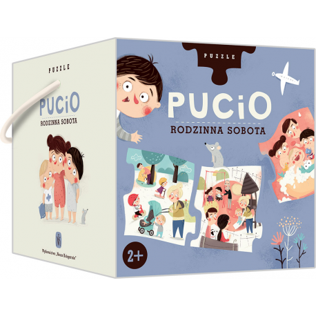 W pudełku jest 15 elementów. Każdy z nich przedstawia fragment jednego dnia w rodzinie Pucia. Po ich ułożeniu otrzymacie ciąg obrazków opowiadających o całej rodzinnej sobocie.