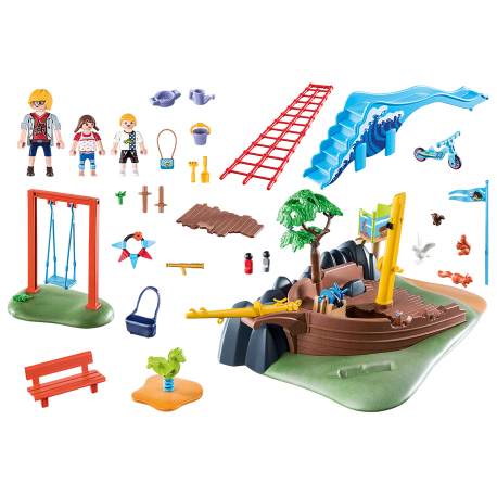 Wyposażony w wiele urządzeń do zabawy, takich jak huśtawki, zjeżdżalnie, sprężynowe huśtawki i różne opcje wspinaczkowe. Na pokładzie wraku znajduje się tajna kryjówka pod zdejmowaną pokrywą. Za pomocą wyciągarki na dziobie wiadro dziecięce można przesuwać w górę i w dół. Platformę widokową z teleskopem można obracać.