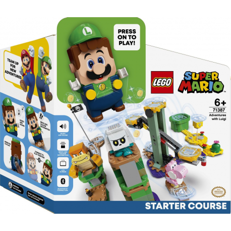 Podaruj dzieciom zestaw Przygody z Luigim — zestaw startowy (71387), aby otworzyć przed nimi drzwi do interaktywnego uniwersum LEGO® Super Mario™. Zawiera on figurkę LEGO® Luigiego™, która żywiołowo reaguje na otoczenie za pomocą wyświetlacza LCD oraz głośniczka i będzie idealnym prezentem dla dzieci lubiących nadawać ton zabawie. Zadaniem graczy jest pomagać LEGO Luigiemu w pokonaniu wirującej huśtawki i ukończeniu zadań z lataniem — za wszystko można zarobić cyfrowe monety. Figurka może też wchodzić w interakcje z Pink Yoshim i stanąć do walki z Boom Boomem oraz Bone Goombą. W tym biomie Tower znalazły się też klocki w kolorze brązowego nugata — one również wyzwalają u LEGO Luigiego różne reakcje, zaś pytajnikowy blok pozwala mu zdobywać dodatkowe nagrody.