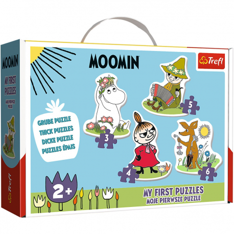 Duże układanki z grubego kartonu dla najmłodszych z bohaterami bajki Muminki.