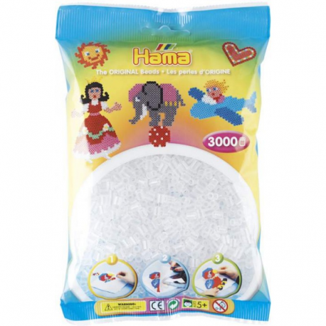 W zestawie znajduje się 3000 koralików w kolorze transparentnym.
