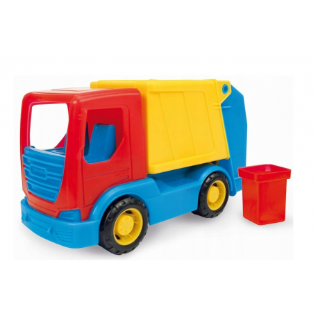 W zestawie znajduje się plastikowa śmieciarka firmy WADER.