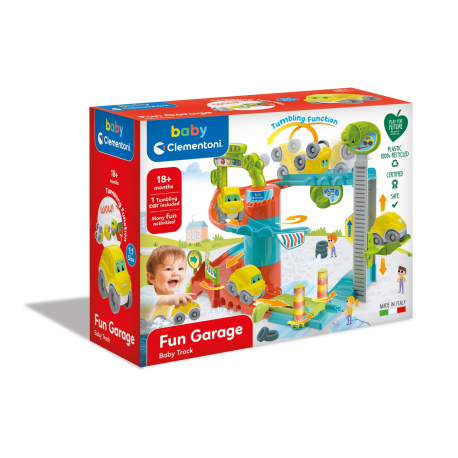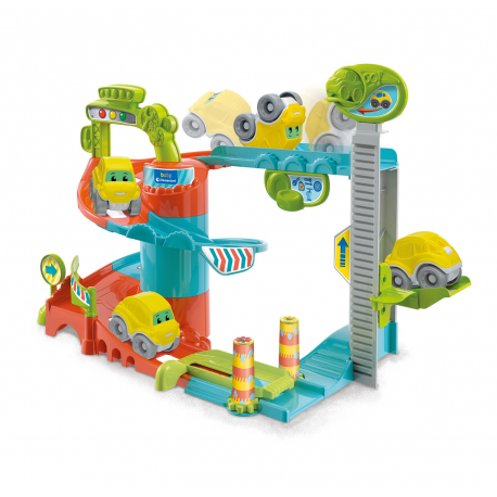 Garaż oferujący moc atrakcyjnych funkcji mechanicznych - samochodzik zjeżdża po trasie, wjeżdża do góry, znowu w dół i nie przestaje się bawić!