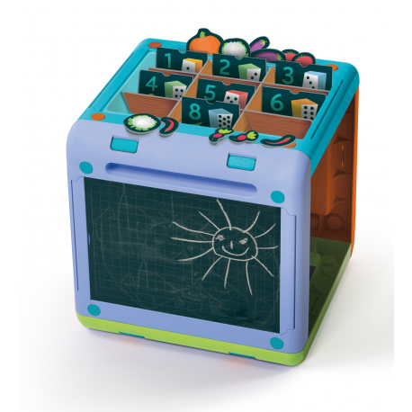Oryginalna kostka multiaktywna, wykonana z plastiku i kartonu z recyklingu, z 4 różnymi poziomami gry oraz z materiałami do wielu zabaw edukacyjnych.