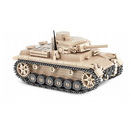 Klockowy Panzer III został odwzorowany z dbałością o szczegóły w modelarskiej skali 1:48. Posiada ruchome elementy takie jak: wieża i lufa działa oraz obracające się koła i gąsienice. Zaletą zestawu składającego się z 292 elementów jest solidna konstrukcja, która wiernie odzwierciedla oryginalne kształty swego historycznego pierwowzoru. Nasz miniaturowy czołg został pokryty wysokiej jakości nadrukami, które się nie ścierają. Panzer III uzupełnia naszą serię miniaturowych czołgów wykonanych w skali 1:48, które zmieszczą się w każdej kolekcji fana historii i techniki wojskowej zbudowanej z polskich klocków konstrukcyjnych COBI.