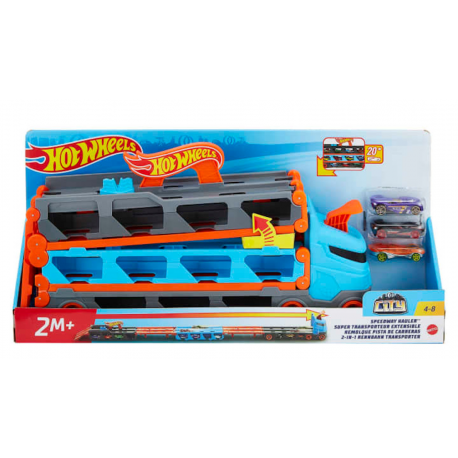 Z funkcjonalnej ciężarówki przewożącej samochodziki może przekształcić się w niesamowity tor wyścigowy o długości 1,8m wyposażony w podwójną wyrzutnię.