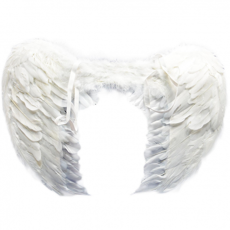 W zestawie znajdują się białe skrzydełka z piórkami zakładane za pomocą elastycznych gumek.