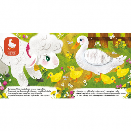 Zabiera małych czytelników w niezapomnianą podróż na wieś. Dzieci znajdą tutaj krótkie historyjki oraz mnóstwo wyrazów dźwiękonaśladowczych.