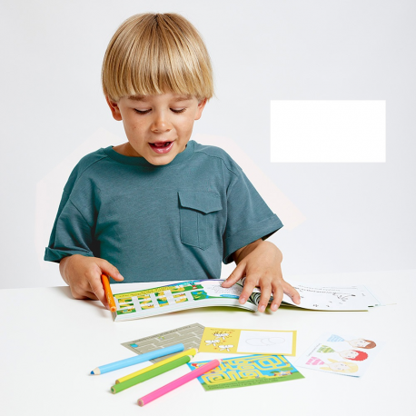 Edukacyjna książeczka dla dzieci w wieku od 5 lat zawiera 240 wciągających zabaw i nowej wiedzy. Każda strona składa się z fragmentu z informacją, zagadką lub zadaniem i części do rysowania i zakreślania, którą można oderwać.