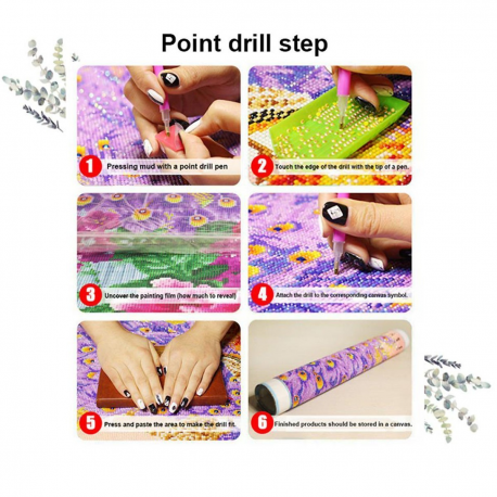 W zestawie znajduje się specjalne płótno z nadrukowanym wzorem. Za pomocą diamencików dołączonych do zestawu, samodzielnie trzeba ułożyć dany obrazek.