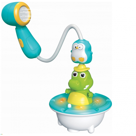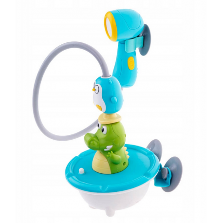 Umieść zabawkę w wodzie i przepinaj końcówki, aby zmieniać sposób wytryskiwania wody. Do wyboru aż 4 nakrycia głowy krokodylka i wężyk z słuchawką prysznicową.