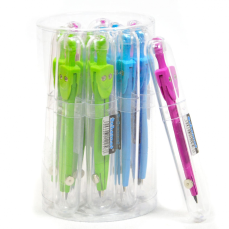Cyrkiel metalowy w etui, z regulowanym uchwytem na grafit.
