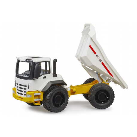 Wywrotka posiada ruchome elementy. Została bardzo dobrze odwzorowana, przypomina prawdziwy pojazd budowlany. Wywrotka posiada skrętną oś przednią, skrzynię załadunkową z wywrotem oraz miękkie koła z profilowanym bieżnikiem. Dzięki temu nie straszny jej żaden teren. Na skrzynię można załadować materiał np. piasek i w łatwy sposób ją opróżnić.