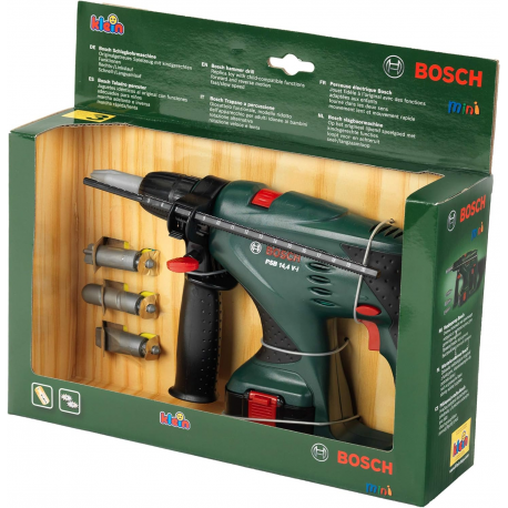 W zestawie znajduje się młotowiertarka na licencji Bosch, która wygląda jak prawdziwe urządzenie.