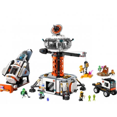 Zestaw dla ośmiolatków i starszych dzieci LEGO® City Stacja kosmiczna i stanowisko startowe rakiety (60434) jest pełen funkcji gwarantujących przygody nie z tego świata. Sterownia i wieża z dźwigiem górują nad głównym sektorem, który otwiera się, umożliwiając dostęp do karuzeli ze sprzętem, laboratorium naukowego i strefy z przekąskami. Zestaw zawiera także statek kosmiczny, stanowisko startowe, pojazd budowlany i scenkę z planetą z zabawkowymi kryształami energetycznymi i roślinnością, a takżesześć minifigurek członków załogi kosmicznej oraz figurki robota i dwóch kosmitów do pomysłowego odgrywania ról.