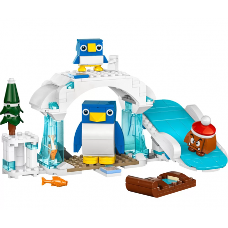 W zestawie LEGO® Super Mario™ Śniegowa przygoda penguinów — zestaw rozszerzający (71430) na siedmiolatków i starsze dzieci czeka wspaniała zabawa w odgrywanie ról. Zestaw zawiera trzy postacie z Super Mario™ — figurkę penguina, małego penguina i Goomby w zimowej czapce — a także lodową jaskinię do zbudowania, lodową zjeżdżalnię, która zmienia się w lodowisko, dwie figurki ryb i sanki.