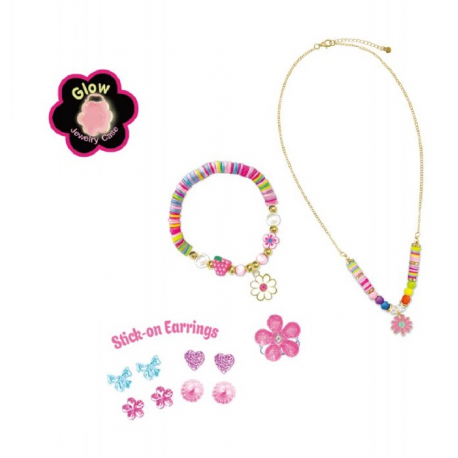 Zestaw akcesoriów biżuteryjnych zapakowanych w ozdobne puzderko z rączką, zamykane na wygodny zatrzask. Będzie idealnym prezentem dla małej miłośniczki mody i trendów.