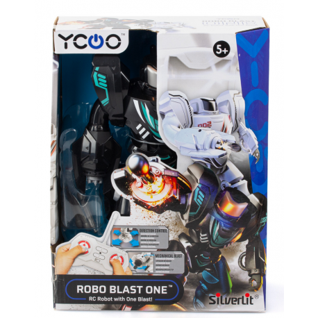 Wystrzałowy robot zapewni rozrywkę, dostarczając przy tym okazji do ćwiczenia celności! Zabawka wyposażona została w specjalny miotacz, w którym wystarczy umieścić dołączone do robota pociski i nacisnąć przycisk na jego przedramieniu, aby Robo Blast One oddał strzał. Poza robotem i pociskami w zestawie znajduje się też pilot do sterowania zabawką.