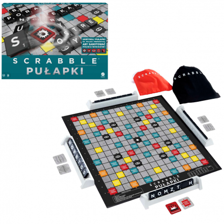 W tej nowej wersji klasycznej gry słownej Scrabble® Pułapki możesz zastawiać pułapki, aby sabotować przeciwników. Gra zyskała niezwykle nieprzewidywalny i emocjonujący charakter dzięki płytkom pułapek i płytkom aktywującym, które włączają do gry specjalne możliwości, takie jak kradzież punktów lub usuwanie płytek, co daje sprytnym graczom niemałą przewagę. Układaj słowa i zbieraj punkty, ale strzeż się pól premiowych! Może się na nich czaić pułapka, która zmieni bieg gry. Skup się dobrze w każdej rundzie, bo gra zmienia się wraz z każdą aktywowaną pułapką. Kolory i elementy dekoracyjne mogą się różnić.