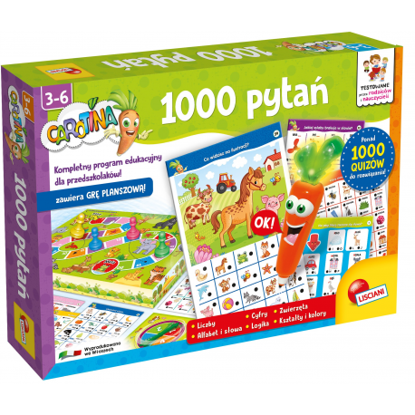 W zestawie znajduje się 10 gier edukacyjnych do nauki i zabawy w towarzystwie mówiącej i świecącej Carotiny!