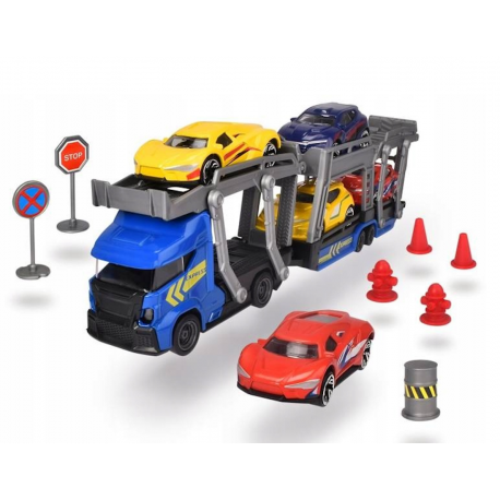 Pojazd posiada dwupoziomową lawetę z ruchomymi i wysuwanymi elementami, na której można przewozić dołączone do zestawu metalowe samochody osobowe.