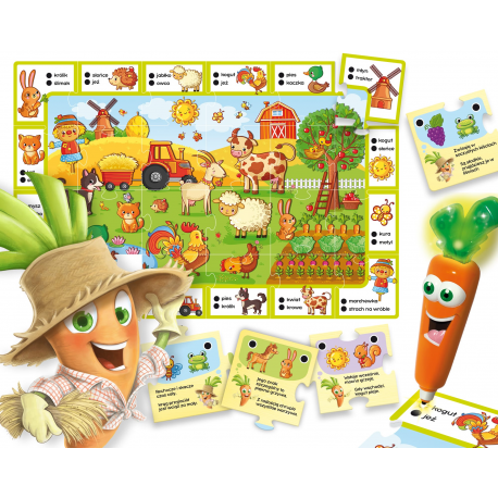 W zestawie znajdują gry edukacyjne do nauki i zabawy w towarzystwie mówiącej i świecącej Carotiny!