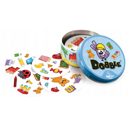 Dobble Kids to gra wspierająca trening spostrzegawczości i szybkości reakcji, w pełni dostosowana do potrzeb najmłodszych. Zestaw zawiera 55 kart z symbolami przedstawiającymi przedmioty i zabawki, którymi dzieci bawią się każdego dnia. Miś, plecak, piłka, rower, lalka – proste obrazki łatwiej nazwać, dzięki czemu możemy zaprosić do zabawy dzieci od 4. roku życia.