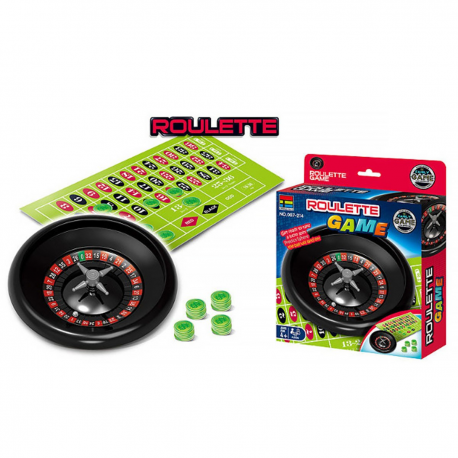 W zestawie: ruletka, dwie kulki, foliowa plansza i 24 plastikowych żetonów w trzech kolorach.Wymiary opakowania: 22,5 cm x 18,5 cm x 4 cm