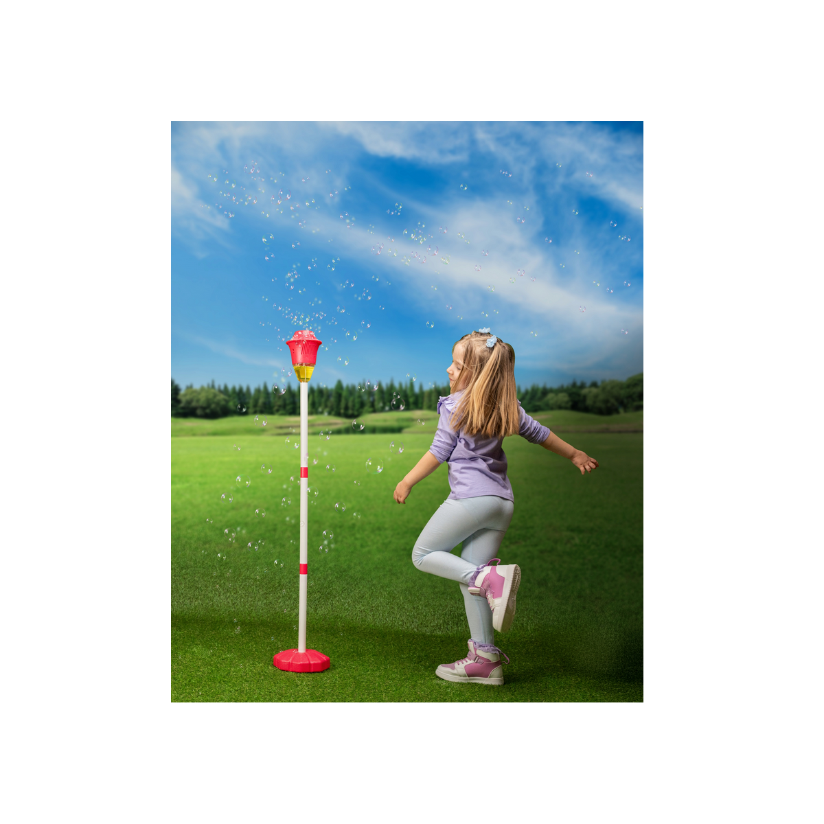 Jest to doskonała propozycja zarówno dla dużych, jak i małych miłośników baniek. Może ona, być wbita w ziemię lub trawę, a także ustawiona na specjalnie zaprojektowanej podstawce, którą łatwo obciążyć wodą, co zapewnia jej stabilność na każdym rodzaju podłoża. Dzięki temu jest niezwykle uniwersalna i praktyczna w każdej sytuacji.