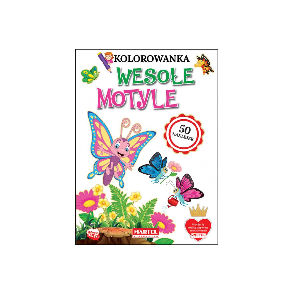 W środku znajdują się ilustracje przedstawiające motyle.