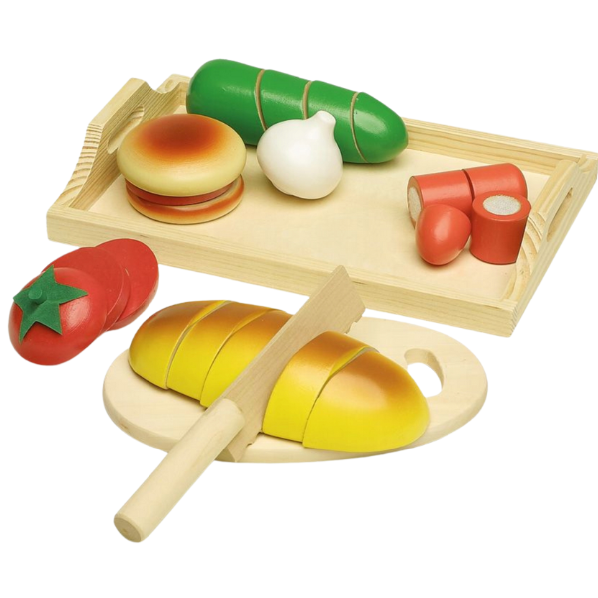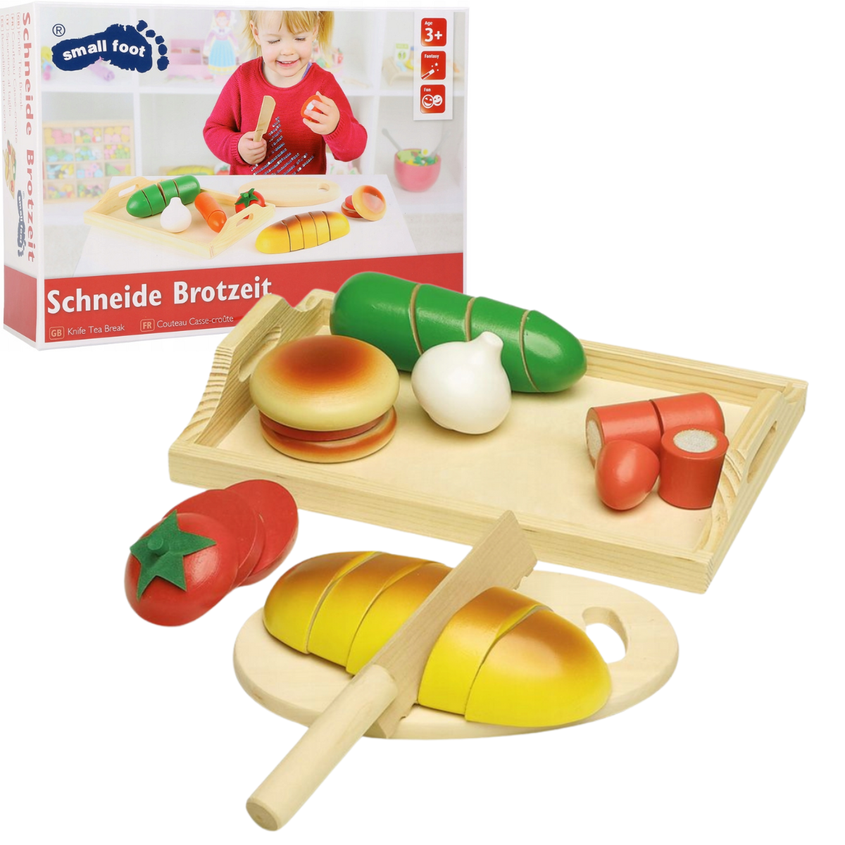 Zestaw drewnianych produktów spożywczych pozwoli maluchowi na stworzenie drugiego śniadania według własnego pomysłu.