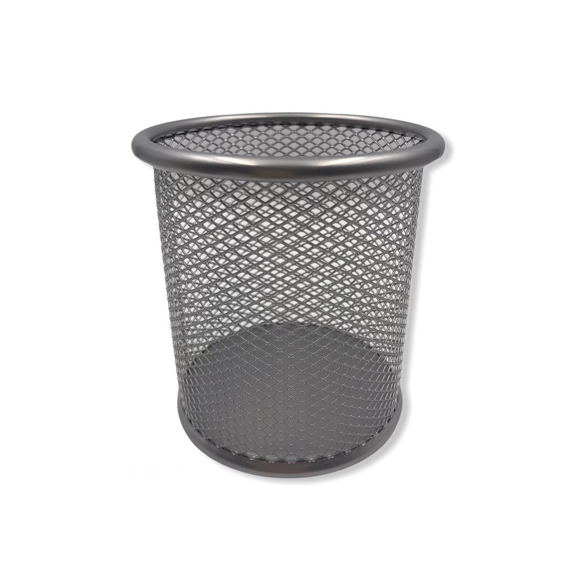 Okrągły pojemnik na długopisy i przybory do pisania do postawienia na biurko.