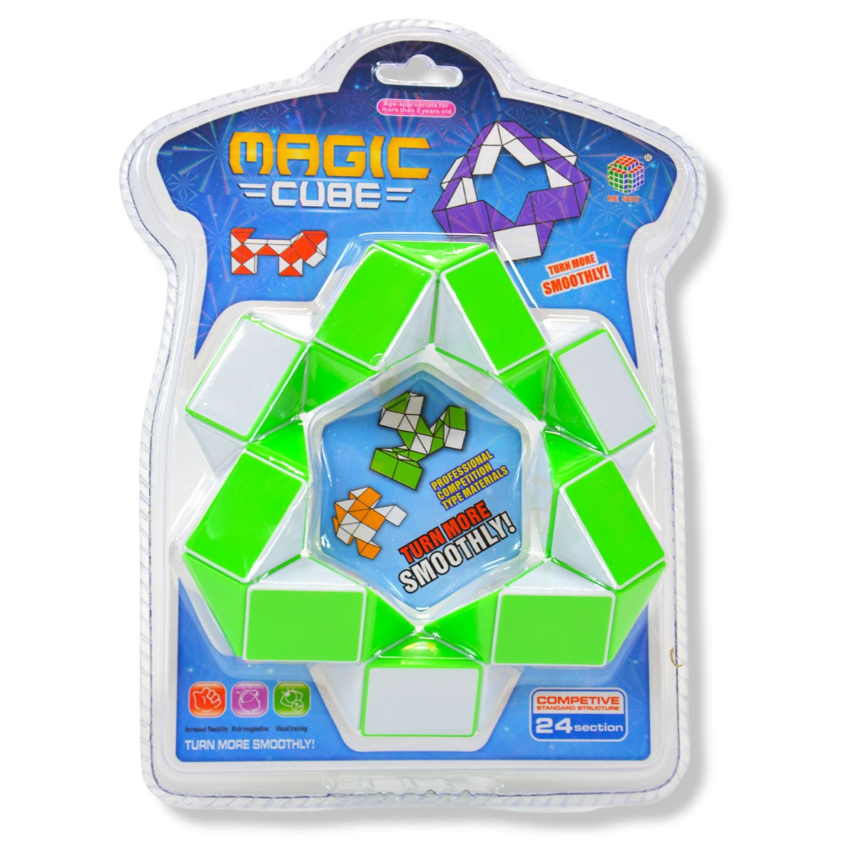 Kostka składa się z ruchomych segmentów połączonych w jeden długi „wąż”, który można skręcać i formować w różne kształty – od prostej kuli, przez zwierzęta, aż po złożone figury geometryczne.
