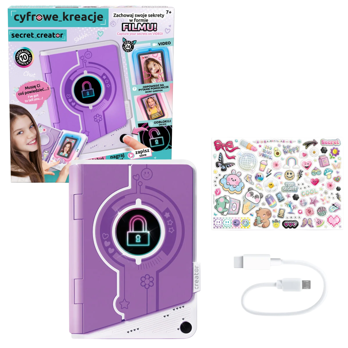 Sekretny Videopamiętnik to nowoczesny, interaktywny pamiętnik, dzięki któremu Twoje tajemnice będą bezpieczne. Jego najważniejszą cechą jest możliwość nagrywania filmików i robienia zdjęć, które możesz zapisać na dołączonej karcie pamięci! Od teraz wszystkie Twoje wspomnienia pozostaną z Tobą na zawsze. Dodatkowo do wyboru masz aż 24 efekty oraz 10 rodzajów oświetlenia. Dzięki nowoczesnej technologii zawartość pamiętnika zabezpieczysz blokadą na swój własny odcisk palca! Tylko ty wiesz co kryje się w środku.