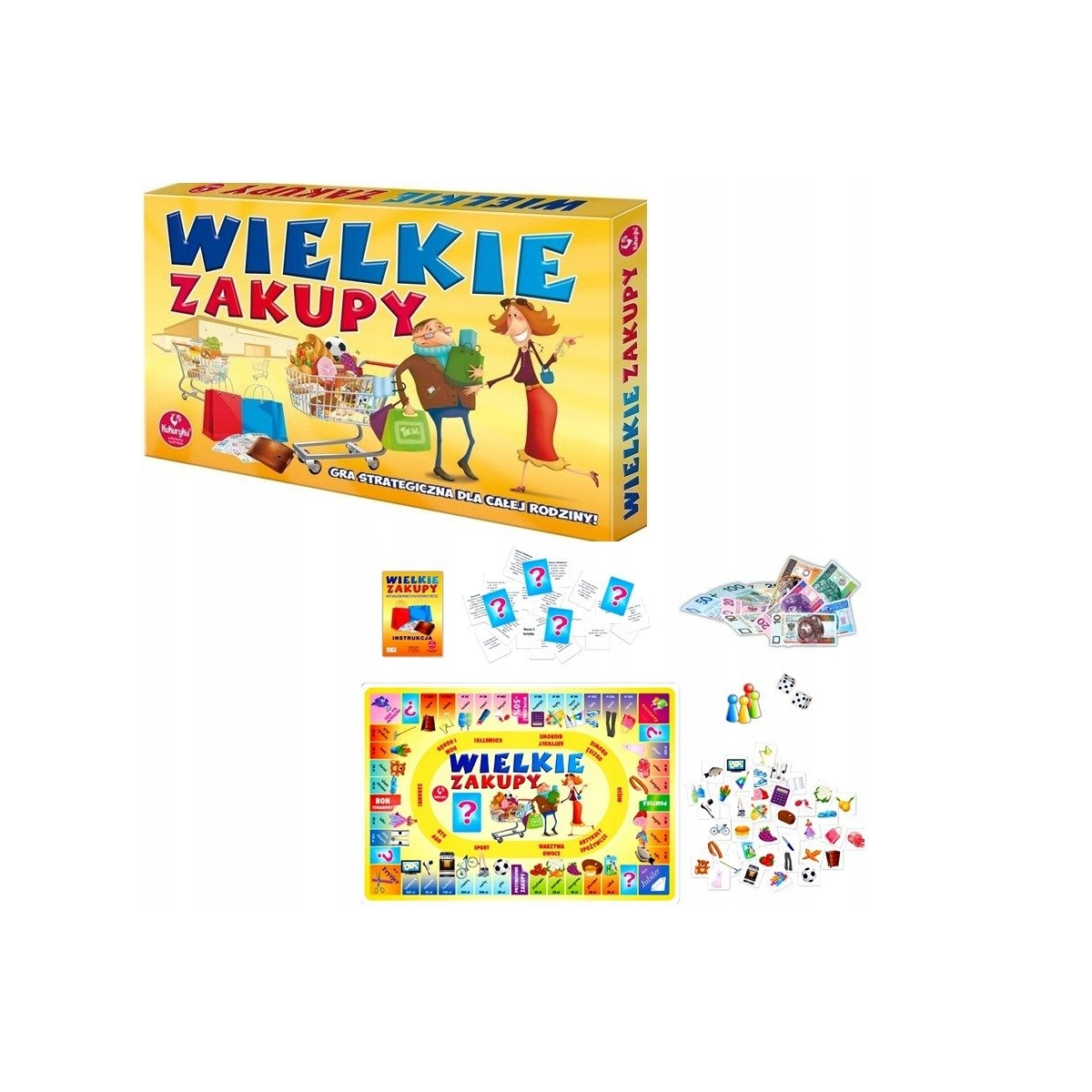 „Wielkie Zakupy” to pełna humoru i rywalizacji gra planszowa, w której uczestnicy wcielają się w sprytnych klientów próbujących jak najszybciej zrealizować swoją listę zakupów. Wędrując po kolorowej planszy pełnej sklepów, promocji i nieoczekiwanych zdarzeń, gracze muszą planować trasy, zarządzać budżetem i podejmować szybkie decyzje, aby zdobyć wszystkie potrzebne produkty przed innymi.