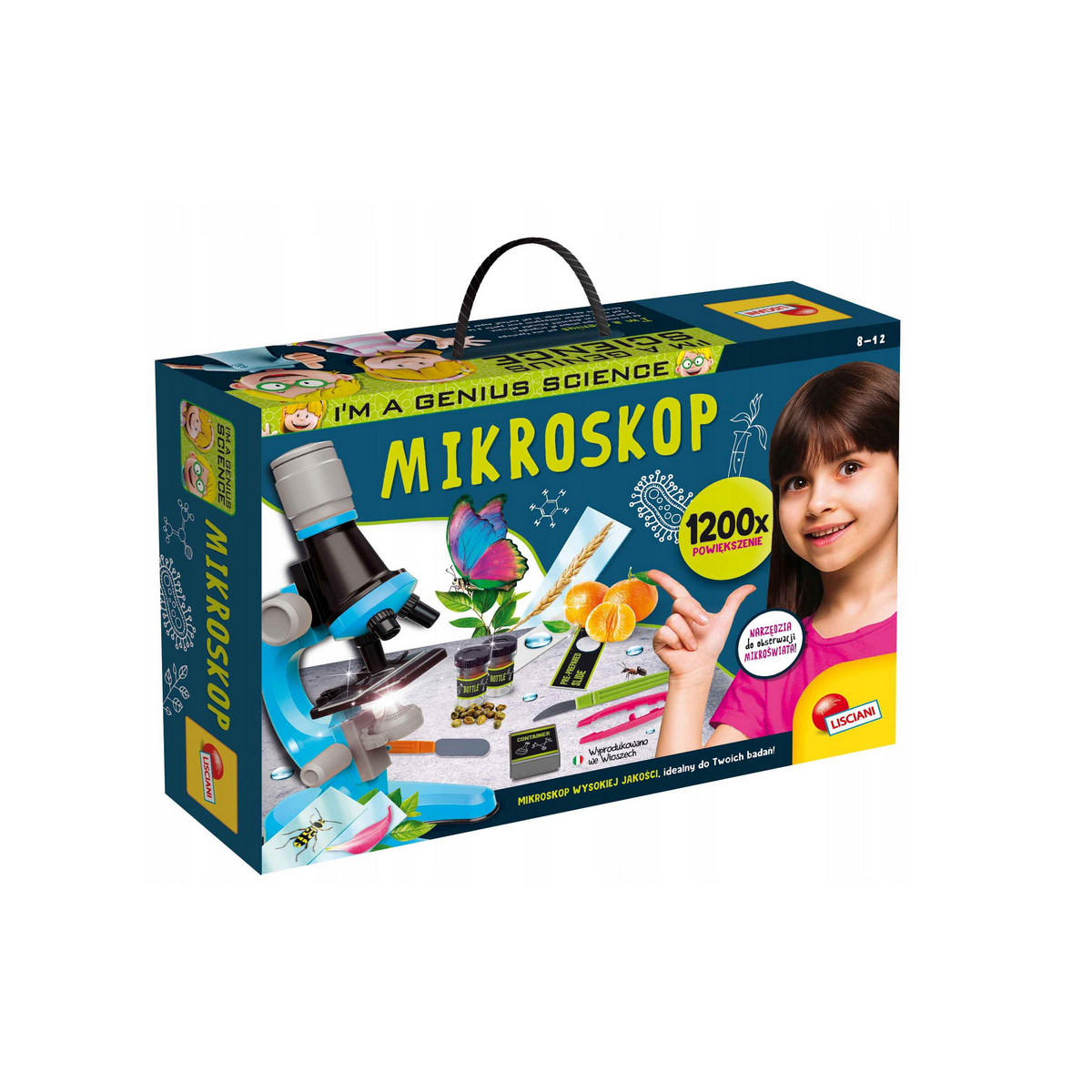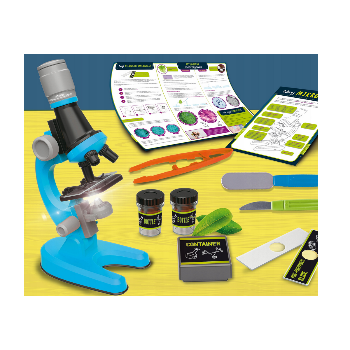 Zestaw edukacyjny zawierający mikroskop wysokiej jakości z 1200-krotnym powiększeniem.