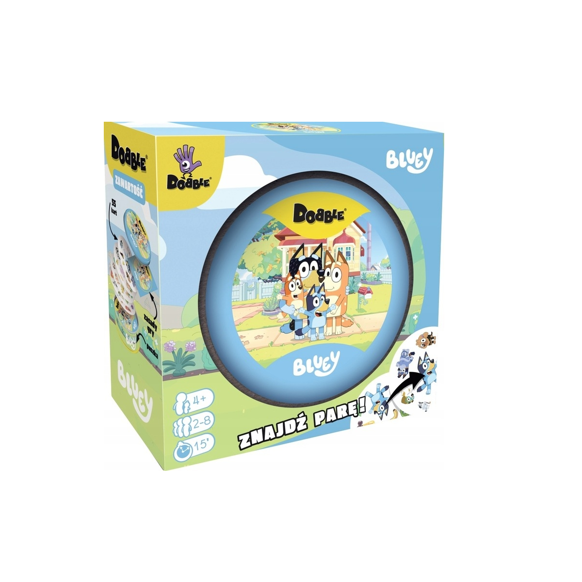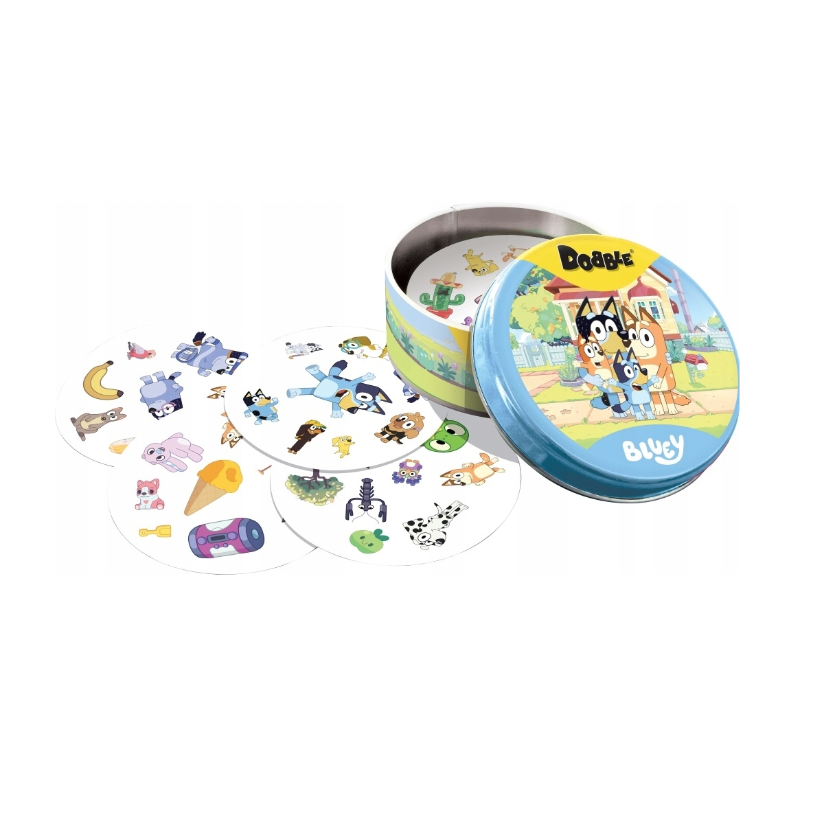 Dobble Bluey to rozrywka absolutnie dla każdego - gra nadaje się zarówno do zabawy z dziećmi, jak i na imprezy dorosłych. 55 kolorowych kart z symbolami z serialu animowanego Bluey zamknięte jest w solidnej, metalowej puszce, dzięki czemu łatwo zabrać Dobble ze sobą i grać absolutnie wszędzie: w poczekalni u lekarza, w pociągu, na wycieczce…