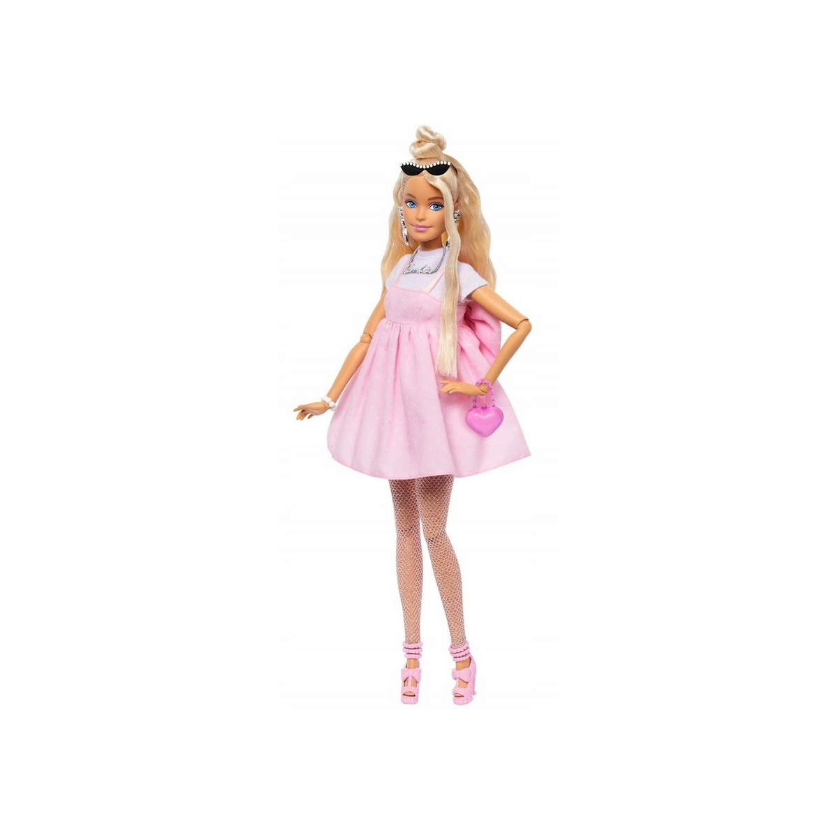 Ta lalka Barbie olśniewa w różu od stóp do głów! W tym wydaniu Barbie ma jasną karnację, piękne długie blond włosy oraz niebieskie oczy. Lalka jest ubrana w piękną różową sukienkę oraz biały top. Na nogach ma różowe rajstopki oraz wysokie botki. Całość kreacji dopełniają biała bransoletka, srebrne kolczyki i naszyjnik oraz mała różowa torebka w kształcie serca.