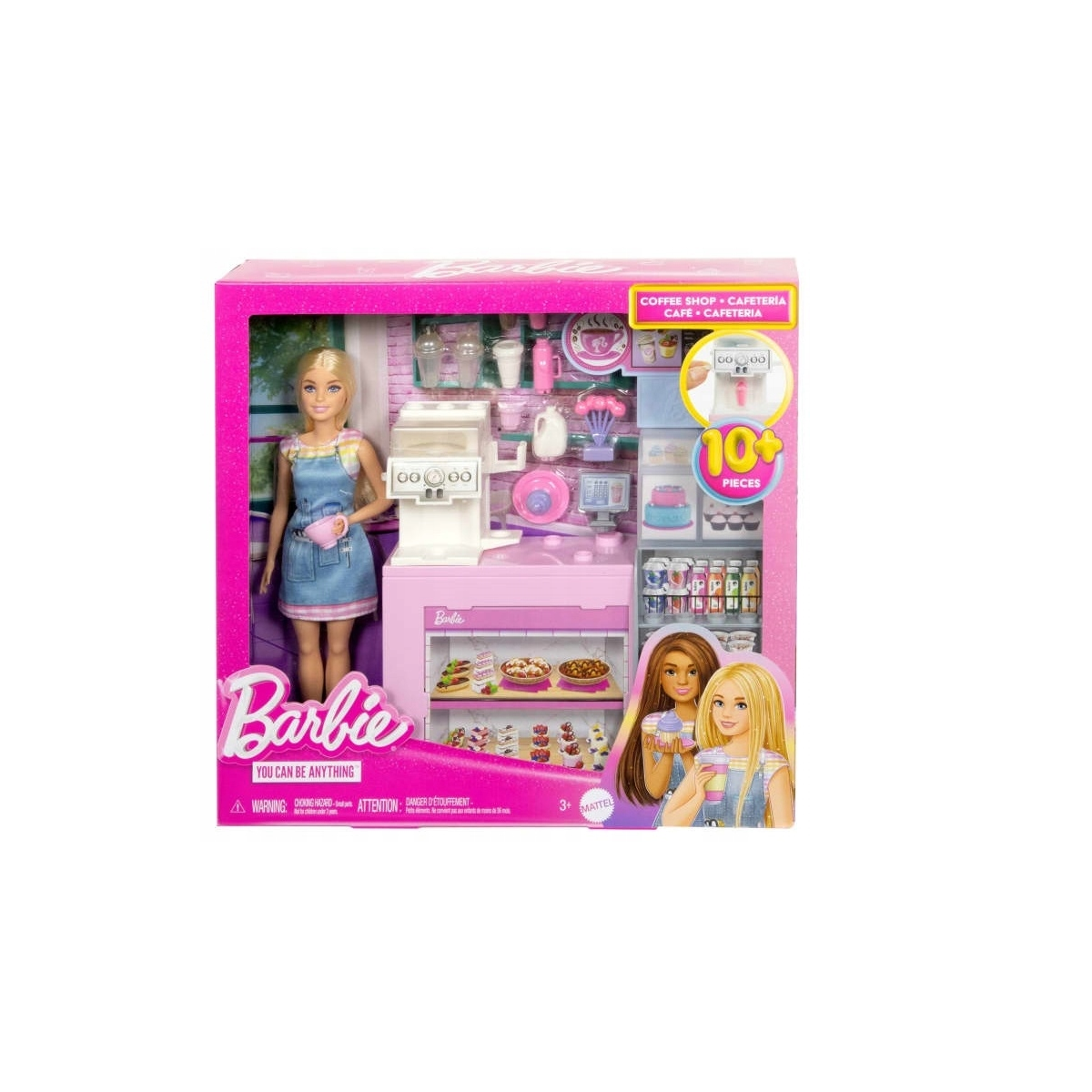 Z lalką Barbie w zestawie Kawiarnia młodzi marzyciele mogą zaserwować gościom najlepszą kawę w mieście.