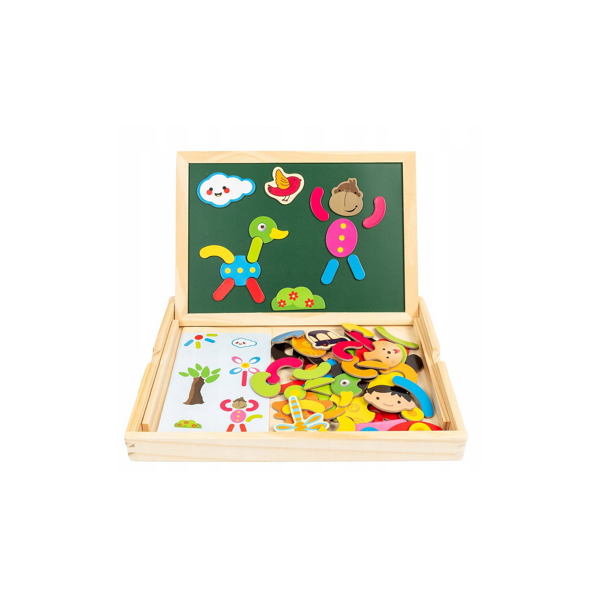 Dołączone magnesy uatrakcyjniają zabawę i wspierają naukę poprzez układanie, dopasowywanie i tworzenie własnych kompozycji.