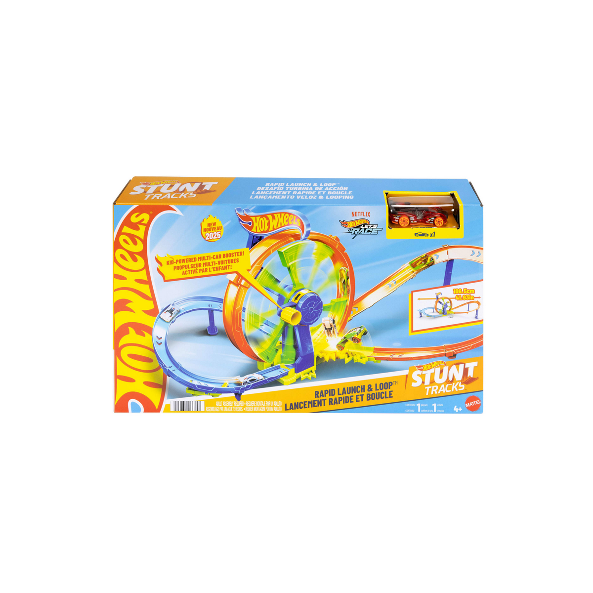Hot Wheels Stunt Tracks – Wyścigowa Turbo Pętla (JBX65) to idealny zestaw dla młodych fanów szybkich aut i widowiskowych akcji!
