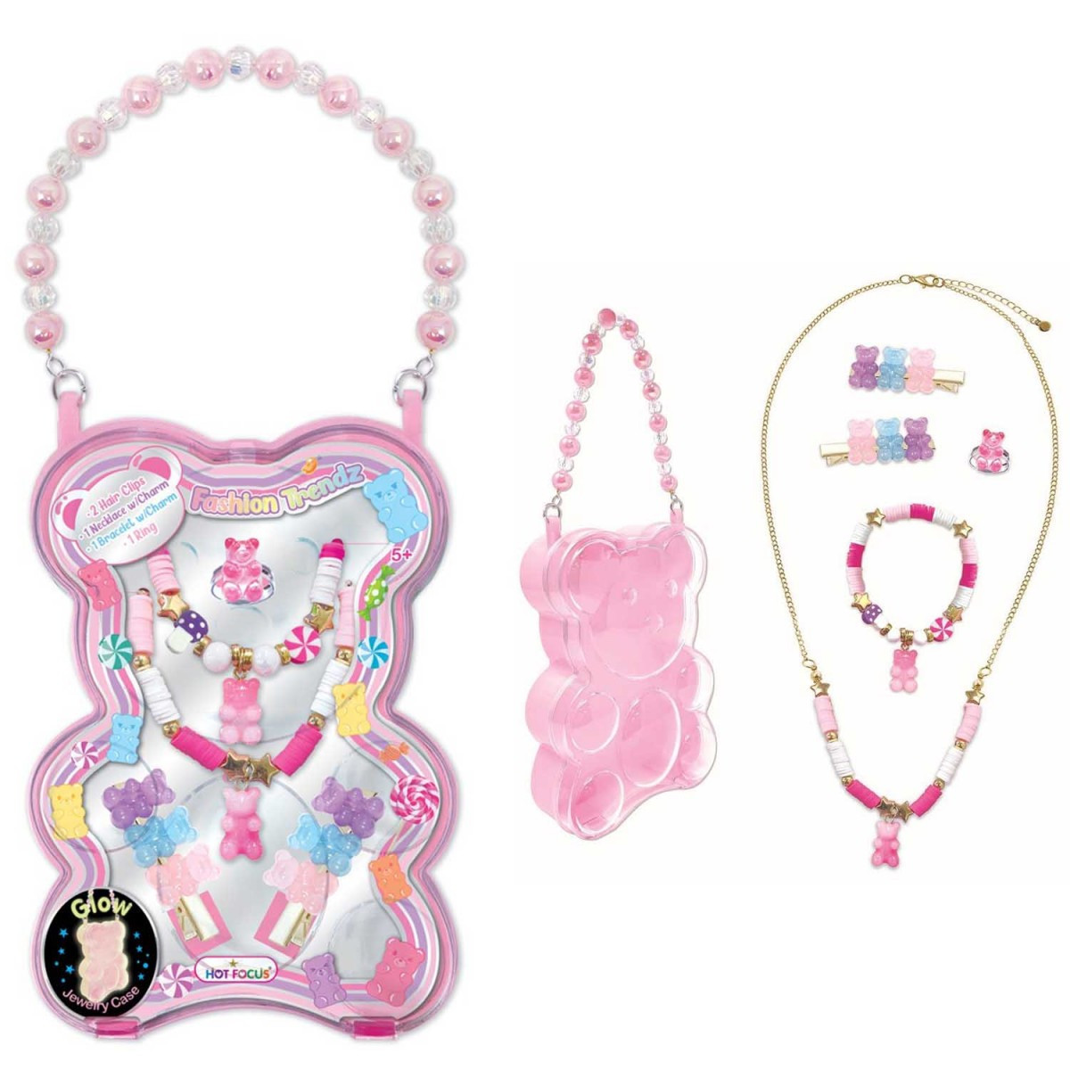 Uroczy zestaw biżuterii dziecięcej zapakowany w wyjątkowe pudełko w kształcie misia to prawdziwa radość dla małych miłośniczek błyskotek.