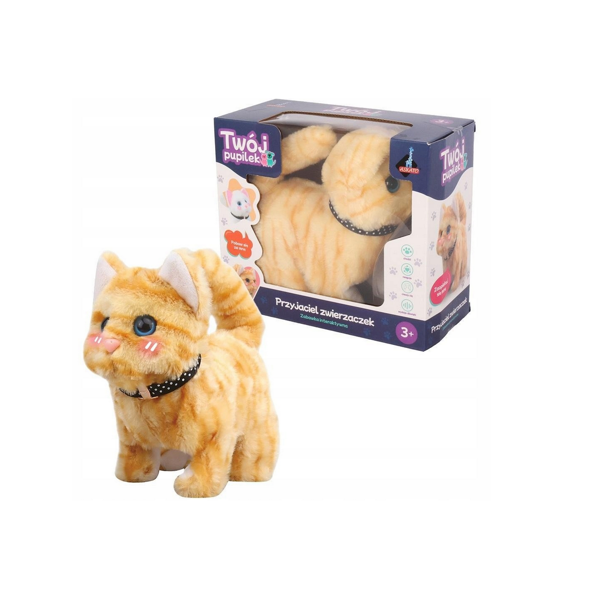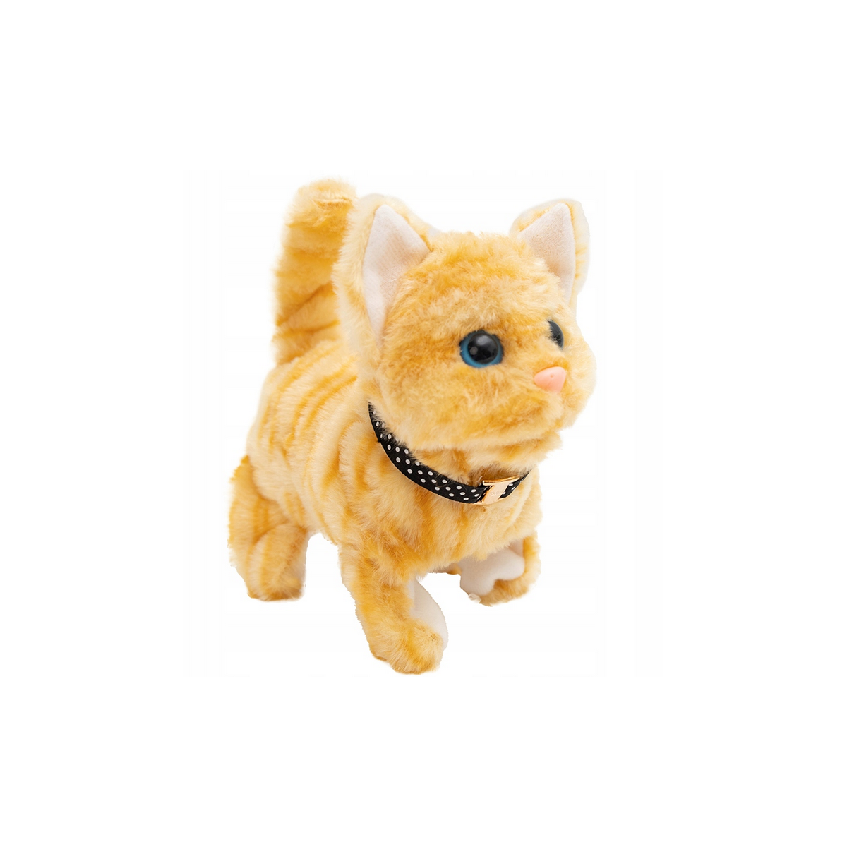 Kotek chodzi, miauczy i rusza pyszczkiem, co sprawia, że wygląda jak prawdziwy! Jego puszysta sierść jest miła w dotyku, a dodatkowa obroża dodaje mu uroku.